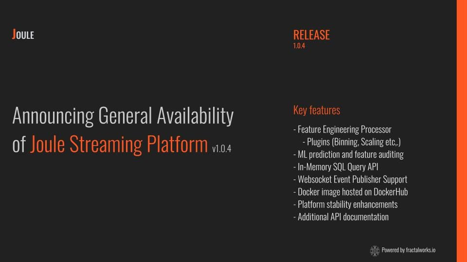 This release brings a number of new features, bug fixes, optimisations and general usability enhancements. The focus of this release has been providing a solid foundation for streaming ML predictions.